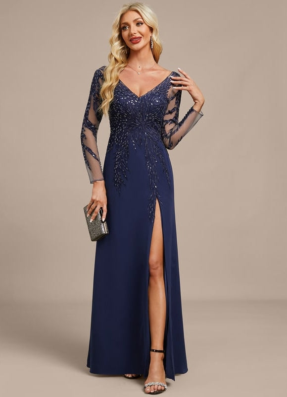 Une Conception Raffinée pour votre Robe Fourreau Soirée Bleu Nuit Élégante