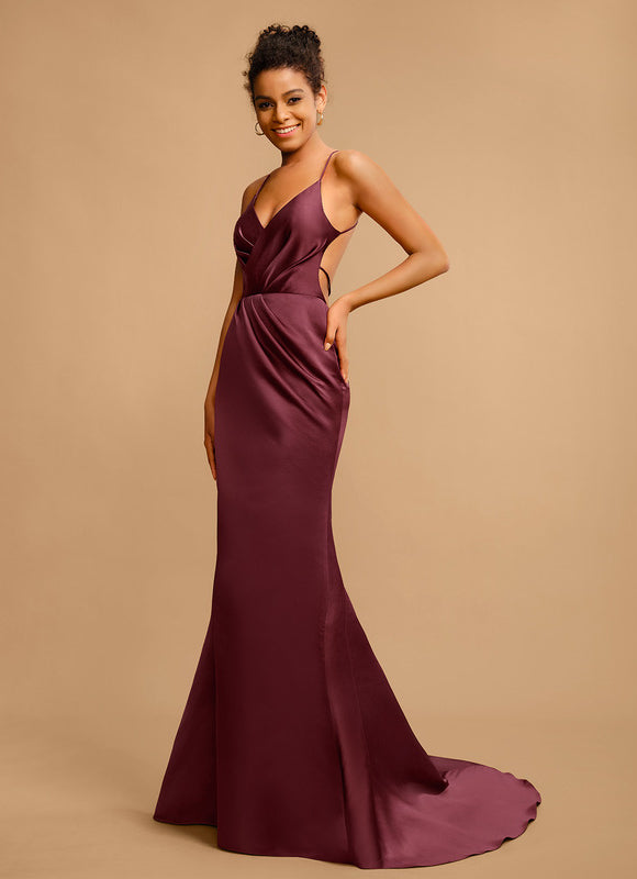 Imaginez-vous, captivant tous les regards dès votre entrée. Cette robe est pensée pour vous qui cherchez à marquer les esprits lors de vos événements spéciaux. Elle épouse vos formes avec une grâce incomparable, soulignant votre silhouette tout en vous offrant une allure sophistiquée et inoubliable. Le satin bordeaux luxueux glisse sur votre peau, et sa traîne subtile ajoute une touche de majesté et de fluidité à chacun de vos pas. Préparez-vous à vivre un moment où vous êtes la star de la soirée.